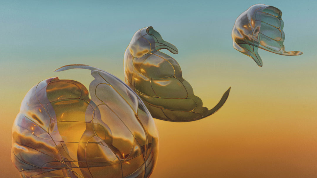 The Fourth Flight is a personal interpretation of the surreal landscape, inspired by the atmosphere evoked by dreams. Organic forms with synthetic accents oscillate between descent and ascent, abstraction and figuration. Straddling the virtual and the material, the work translates digital aesthetics into an instinctive painterly medium and explores the boundary between the real and the unreal, the familiar and the unknown.
